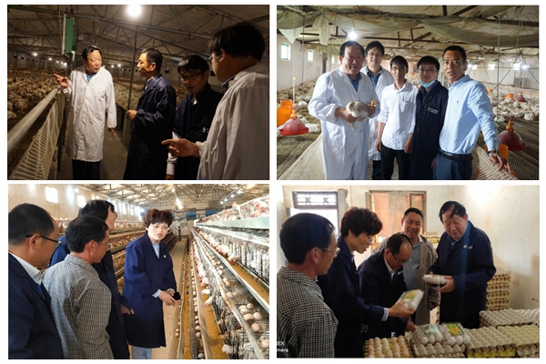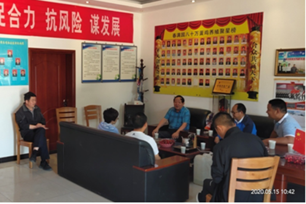 随后,高玉鹏一行来到铜川市印台区,与印台区农业农村局副局长雷铜、畜牧技术推广站和动物疫控中心负责人就蛋鸡养殖技术扶贫具体工作进行交流并达成共识。现场与印台区春满园养鸡合作社的技术负责人、养殖户就目前蛋鸡养殖需要关注的主要技术问题、优质品牌鸡蛋生产关键控制环节等进行交流。详细了解“公司+贫困村+贫困户”帮扶模式的运行和技术帮扶情况,随后深入合作社带动的红土镇枣园村等4个代表性养殖户,入鸡舍现场解决养殖中的实际技术问题,特别是简陋的鸡舍如何控制好鸡舍环境,以及夏季抗热应激管理等实操技术进行解答或指导。