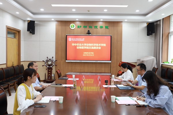 5月20日—23日,华中农业大学动物科学技术炸金花在线玩 动物医炸金花在线玩 党委书记刘兴斌,华南农业大学动物科学炸金花在线玩 院长江青艳,河南农业大学炸金花在线玩 党委书记贾磊、院长李明,新疆农业大学动物科学炸金花在线玩 副院长依明·苏来曼带队,分别来院调研交流,炸金花在线玩 党委书记曹军会、副院长(主持工作)姜雨、党委副书记王力、副院长凌飞、杨小军、王小龙及相关教师代表参加座谈会。