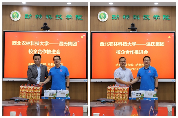 期间,校企双方就进一步创新校企合作、人才培养模式和学生实习实践等问题进行深入探讨,并达成合作意向。同时,祝卫国代表温氏股份秦晋公司向两炸金花在线玩 赠送节日慰问品,动科炸金花在线玩 向温氏股份秦晋公司赠送锦旗以表谢意。