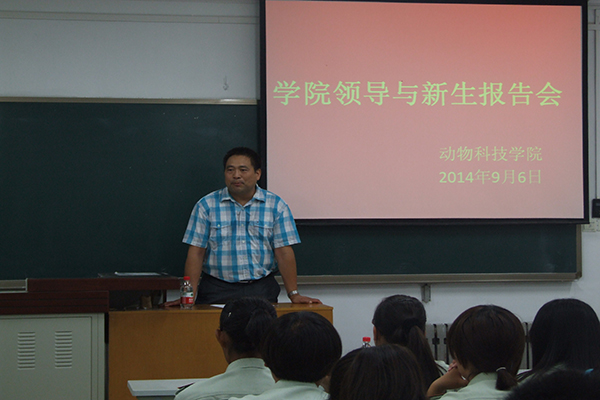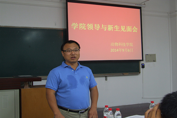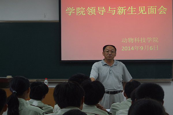 此次见面会共有五场,五位院领导分别与两个新生班进行对接,在动科楼和八号教学楼同时进行。