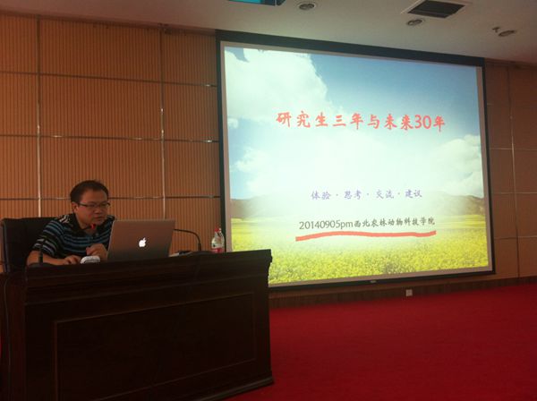 欧百钢处长紧紧围绕“为什么攻读硕士、博士学位?”和“如何度过研究生三年?”这两个问题,向大家介绍了目前我国研究生教育和培养的现状,各学历层次学位授予的基本要求,研究生就业,近年来我校动物相关学科的动态排名,今后研究生招生和毕业要求的发展方向等内容,并深刻剖析了学业与专业,知识与能力,个人修养、身心健康、为人处事与个人发展,职业与谋生,事业与理想之间的关系。他指出,研究生的三年是奠基人生道路的三年,作为一名研究生应该“文理兼备、博古通今、学贯中西、知行合一、德艺双馨”,力求全面发展,同时要塑造崇高的人格和伟大的理想,淡泊明志,宁静致远。