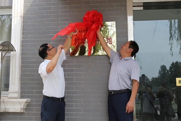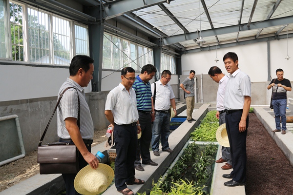 闫祖书书记一行首先参观考察了基地池塘节能减排网箱、池塘生态浮床、孵化车间及住宿实验条件,详细了解了生态养殖系统的设计原理及水质循环净化效果等。考察后,闫祖书书记和孙定站长共同为“教学科研基地”进行揭牌。