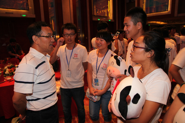 8月12日上午,在现代奶业技术人才培养研讨会上,中国农业大学李胜利教授、中国人才交流协会副主席孟庆伟研究员、辽宁辉山乳业集团常务副总裁葛坤分别作了题为中国奶业形势及奶业人才培养现状、用智慧统帅知识??透视大学生就业难的七大深层次问题、辉山集团人才战略的报告,闫书记就企事业对人才需求等相关问题与报告人进行了互动交流,并表达了与辉山乳业共同开展人才培养合作的意愿。下午,闫书记代表28所参会高校在“开心牧场暑期实习结业典礼”上作了发言,他首先对在短短21天的暑期活动中,同学取得的成绩表示祝贺,他希望同学们要把这种炸金花在线玩在校园里广泛传承,起到校企合作的桥梁作用,闫书记最后祝愿这种校企合作天长地久。