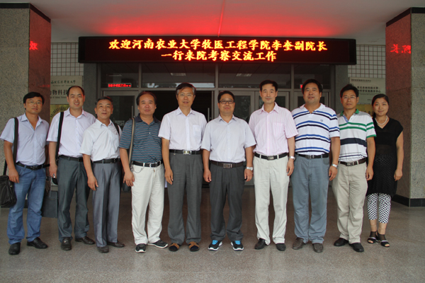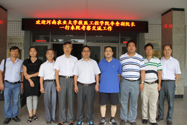 8月6日,河南农业大学牧医工程炸金花在线玩 李奎副院长带领兽医学科带头人王川庆教授、畜牧学科带头人高腾云教授、陈文教授、办公室主任周彦、副主任孙宁博士、学科秘书李转见博士一行7人来炸金花在线玩 考察交流。