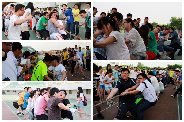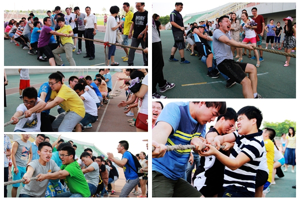 此次比赛秉承“友谊第一,比赛第二”的原则,每班选取10名男生和5名女生组队,10个班级被分为A、B组,每组五个班级,采用车轮赛规则。随着裁判的一声令下,比赛正式“拉”响,同学们纷纷投入“战斗”,压低重心,劲往一处使,心往一处想,男生个个都涨得面红耳赤,青筋爆粗;女生也毫不示弱,放下了平时的淑女风范,使尽浑身力气将绳拉向自己一方。绳中间的砝码也成了墙头草,在两边倒来倒去,比赛进入白热化状态。老师和同学们组成拉拉队更是热情高涨,加油声一浪盖过一浪,赛场上处处洋溢着青春的滋味。各班比赛结束后,老师与同学们的友谊赛又精彩上演,至此,比赛在师生其乐融融的欢声笑语中圆满结束。经过激烈的比拼,动科103班摘得桂冠。