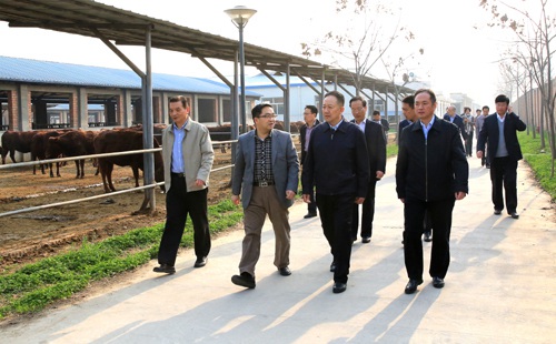 陕西省委统战部部长陈强(左三)参观我校畜牧教学实验基地
