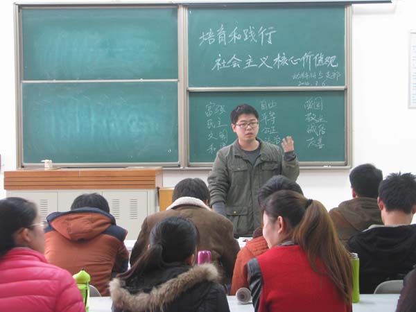 继院党委3月14日组织研究生党支部委员及党员代表参加“关于培育和践行社会主义核心价值观的意见”辅导报告会后,各研究生党支部分别以支部或班级为单位深入学习“关于培育和践行社会主义核心价值观的意见”。大家在对国家层面的价值目标,倡导富强、民主、文明、和谐;社会层面的价值取向,倡导自由、平等、公正、法治;个人层面的价值准则,倡导爱国、敬业、诚信、友善24个字的基本内容进行深入学习后,结合自身的学科专业特点开展了热烈的讨论。一致认为,身为一名在校研究生应该把诚信和友善作为行动准则,深入践行社会主义价值观,做到学术诚信,友善待人,以身作则将社会主义核心价值观传扬给周围每一个人。