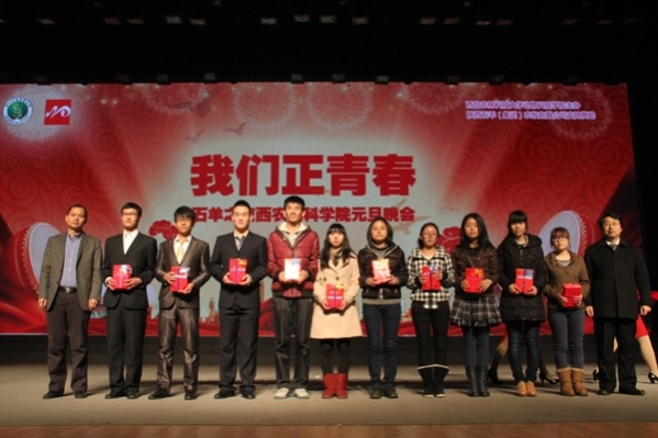 12月25日晚,炸金花在线玩 2013年学生表彰大会暨2014年元旦晚会在北校区绣山活动中心隆重召开。陕西石羊(集团)股份有限公司领导、成都大帝汉克生物科技有限公司领导、我校就业指导中心、团委、学生处等单位负责同志以及炸金花在线玩 全体领导、教职工、研究生、本科生、成教生共计1500余人欢聚一堂,共度良宵。