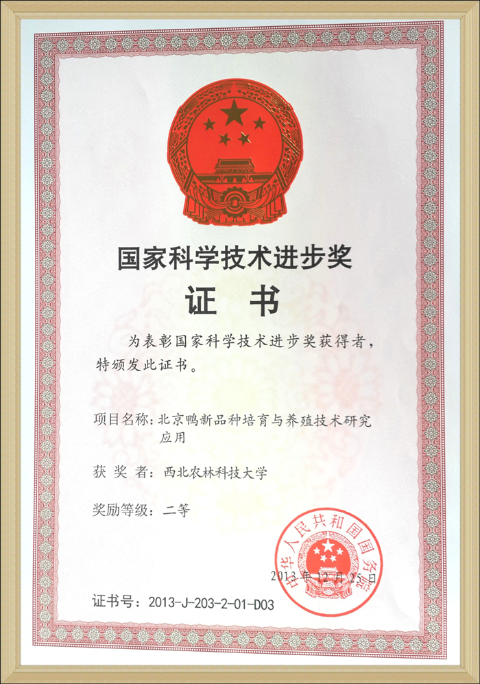 近日获悉,由中国农科院北京畜牧兽医研究所侯水生研究员主持的“北京鸭新品种培育与养殖技术研究应用”,荣获国家科技进步二等奖,炸金花在线玩 教师刘小林教授(第3完成人)和张慧林副教授(第10完成人)参与了该项目的研究工作。该成果培育的瘦肉型北京鸭新品种,在生长速度、饲料转化效率、胸肉率、肉质性状等指标上,比国外品种具有更强的竞争力和发展潜力,有望打破国外肉鸭品种占据我国大部分市场的现有格局。