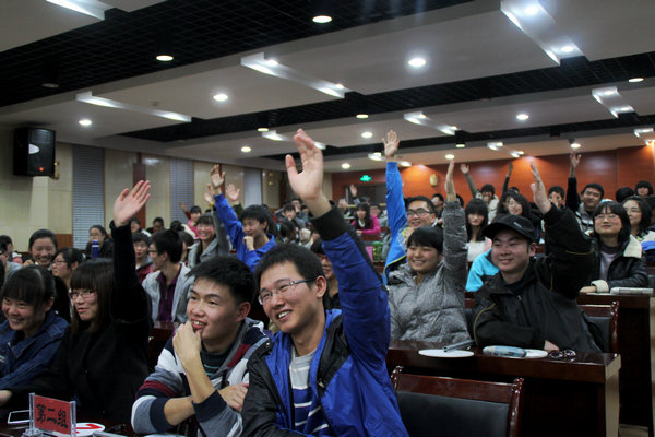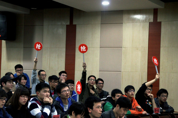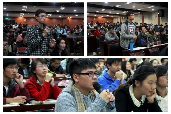 比赛分为必答题、抢答题、风险题三个环节。参赛同学沉着冷静,一一作答,展现了同学们扎实的专业基础知识。当选手答题错误时,该题目交由现场观众回答,答对者有小礼品赠送,极大地增强了同学们的参与热情,活跃了现场气氛。评委们针对疑难问题给出了明晰的解释,使选手明确了答题要点,增长了知识。场上的比分交替上升,气氛紧张激烈,参赛选手的精彩表现赢得现场同学的阵阵掌声。