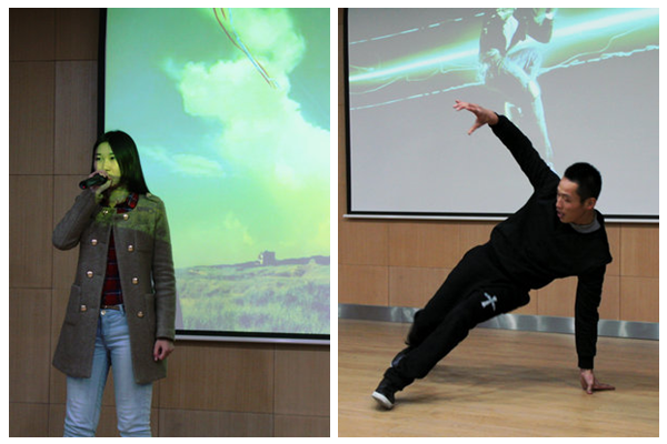 比赛间隙还穿插了精彩的文艺节目,歌曲《像梦一样自由》鼓舞人心,街舞协会带来的街舞表演动感十足,有效地缓解了选手们的紧张情绪。