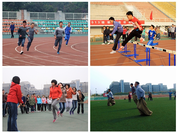 除常规项目外,此次新生运动会还加入了袋鼠跳、跳背接力、50米绑腿跑、多人跳大绳等趣味项目,同学们在运动中赛出了水平、赛出了风格,赛出了友谊、收获了喜悦与欢乐。
