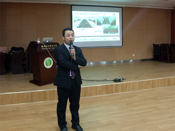 刘经理以“选择,比努力更重要”、“期待,与您共创辉煌”为主题,首先强调了选择的重要性,并给大家展示了公务员考试、企业招聘等不同就业途径当今的现状。他指出,农牧行业尤其是养猪业,已经发展为前景广阔的产业链模式,公司急需相关专业人才,可供动科动医学子选择的就业机遇很多,选择正确的岗位便是找到了实现自我价值之路。他希望广大学生抓紧在校时间,努力学好专业知识,为自己将来的就业做好充分准备。