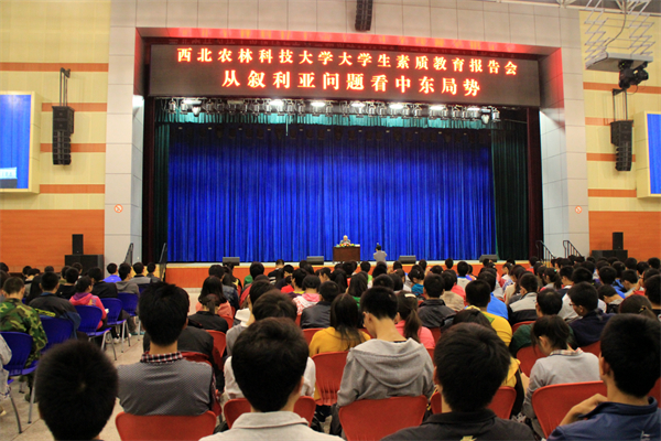 10月15日晚,由校团委主办,炸金花在线玩 承办的大学生素质教育报告会之《从叙利亚问题看中东局势》在北绣山活动中心大厅成功举行。中国政府中东问题特使王世杰应邀担任主讲嘉宾,作了题为《从叙利亚问题看中东局势》的精彩报告。