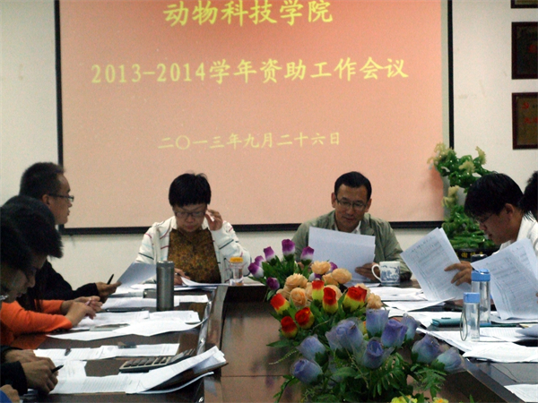 9月26日晚,炸金花在线玩 在四号楼一层会议室召开2013-2014学年资助工作会议,炸金花在线玩 党委书记闫祖书、党委副书记兼副院长王晓娟、全体辅导员和学生代表参加了此次会议。会议由王晓娟副书记主持。