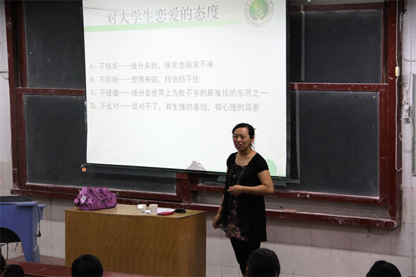 8月29日晚,炸金花在线玩 在四号楼4129教室召开2013级新生心理健康教育报告会,邀请心理咨询中心符丹老师担任主讲嘉宾,辅导员胡巧娟、王德光和2013级全体新生参加了此次会议。