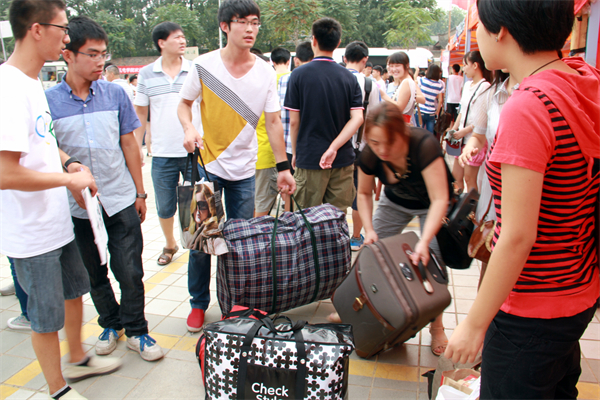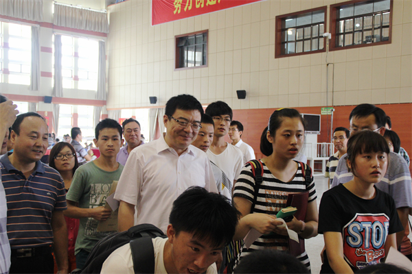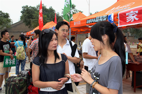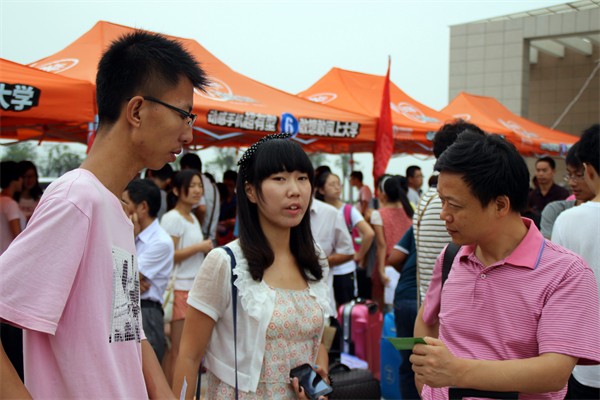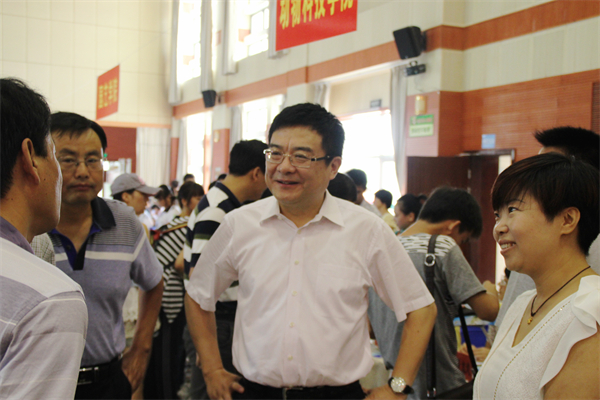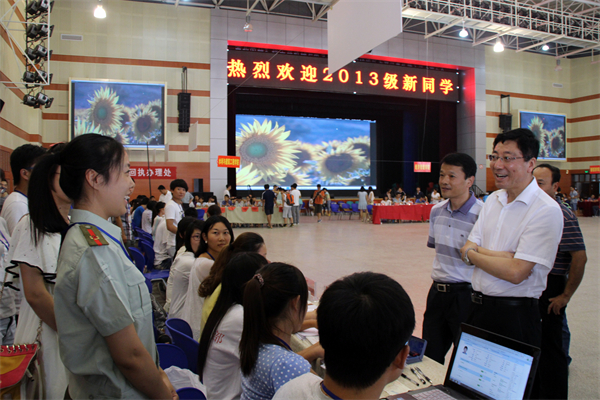 孙其信校长与炸金花在线玩 新生接待工作师生亲切交谈