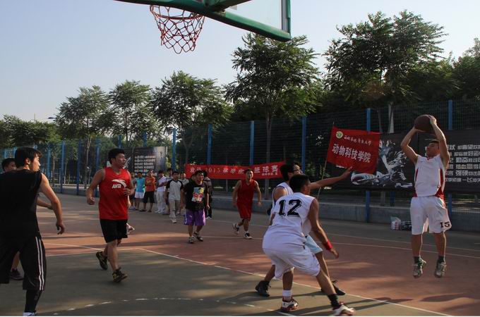 6月7日下午,炸金花在线玩 在北校区篮球场举办了欢送2013届毕业生篮球赛。来自炸金花在线玩 各个专业的18名2013届本科生和研究生代表参加了此次比赛。炸金花在线玩 党委副书记兼副院长王晓娟、学工秘书袁伟斌、全体专兼职辅导员,亲临现场观看了比赛。