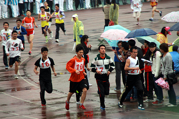 雨中拼搏