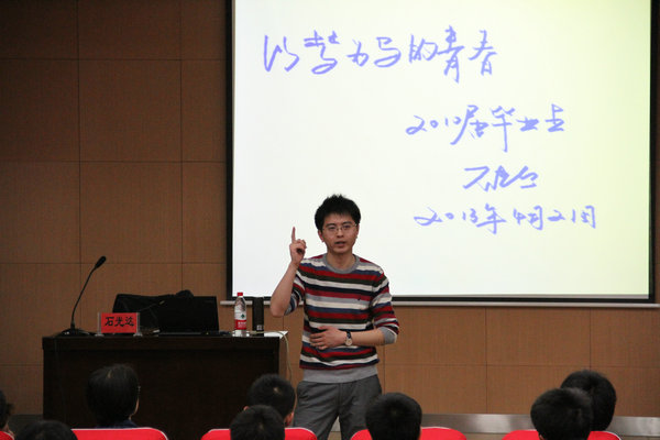 石光达校友还就个人发展问题向在场学生干部做了指导。他介绍了本科生与研究生在企业中的区别,鼓励同学们继续深造,“带着技术”走进企业。他特别提起了工作之初的艰苦时光和个人体验,使同学们懂得“坚持成就梦想”。关于青春、爱情和生活,石光达也提出了自己的见解,引起了同学们的强烈共鸣。