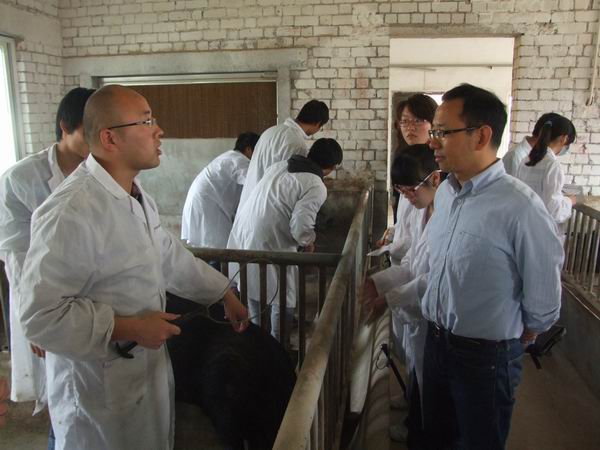 4月25日下午,炸金花在线玩 党委书记闫祖书及党务秘书樵淑银、学工秘书袁伟斌到畜牧教学基地检查动物科学专业大三学生**********参加的教学实习。