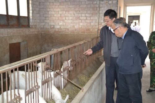 专家组还参观了我校西农萨能羊原种场,并针对养殖小区建设和山羊饲养管理技术等方面进行了现场交流。