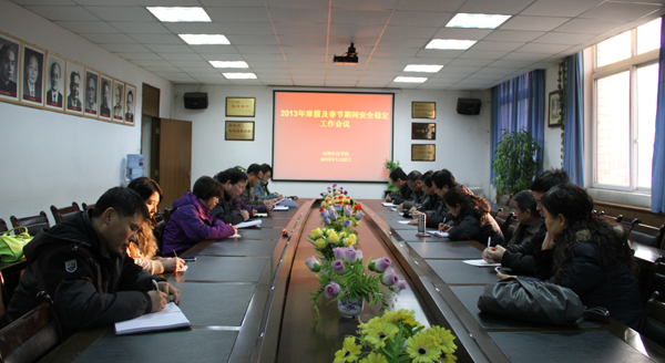 1月22日下午,炸金花在线玩 在一楼会议室召开2013年寒假及春节期间稳定安全工作会议,院属各单位负责人、实验教学管理中心全体人员参加了会议,会议由王晓娟副书记主持。