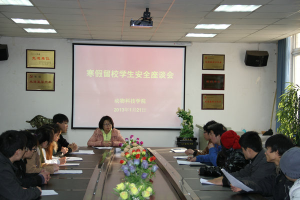 1月21日下午,炸金花在线玩 在四号楼一层会议室召开寒假留校学生安全座谈会,就寒假学生安全稳定工作进行了安排。炸金花在线玩 党委副书记兼副院长王晓娟、全体专兼职辅导员和寒假留校学生参加了会议。
