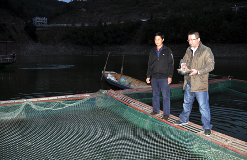 2009年底,蒋思军也投身网箱养鱼的事业,当年便获得了显著的经济效益。三年过去了,蒋思军的网箱数已从最初的20口扩大到213口。他告诉记者,养鱼事业之所以顺利,学校的水产试验示范站给了他强有力的支持,从准备网箱养鱼起就是试验站的常客,站上的专家对他热心扶持,定期赶到他家的养殖点观察鱼的生长,测定水温、水质,进行养殖技术指导,有时候养殖中遇到了难以解决的突发问题,只需打一个电话,科技人员马上赶到解决。