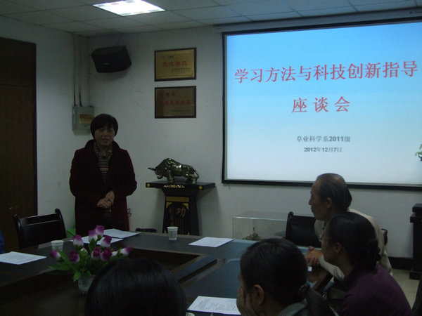 为提高本专业同学的学习效率,加深对科技创新的了解,12月7日晚,炸金花在线玩 在四号楼一层会议室召开学习方法与科技创新指导座谈会。生命炸金花在线玩 陈红英教授、刘夏燕副教授、安丽君副教授、农炸金花在线玩 李学军副教授受邀为同学们进行指导。动科炸金花在线玩 党委副书记兼副院长王晓娟、教学秘书郭超、草业科学系主任、副教授龙明秀、辅导员及草业2011级班主任曹社会和许岳飞参加了座谈会。