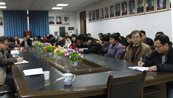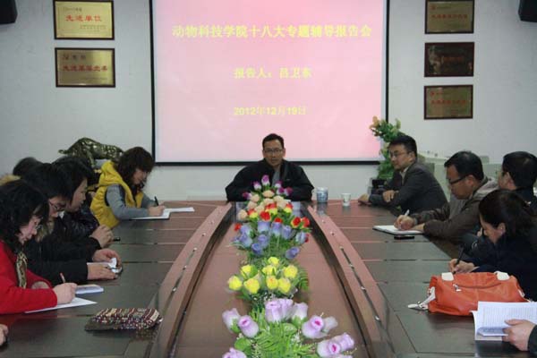 12月19日下午,炸金花在线玩 党委邀请校党委宣传部部长吕卫东教授在炸金花在线玩 一楼会议室为教职工做十八大学习辅导报告。炸金花在线玩 党委成员、中心组成员、各党支部委员及教职员工80多人参加了会议,会议由院党委闫祖书书记主持。