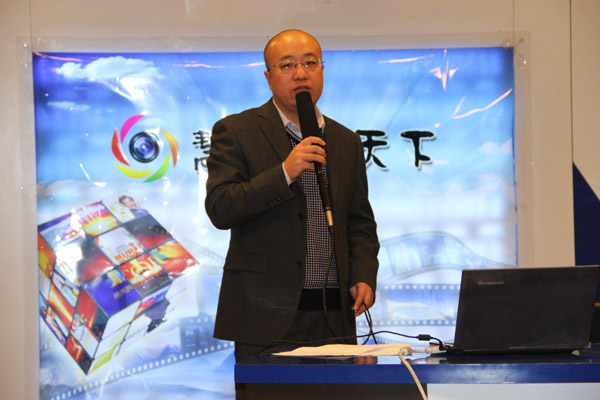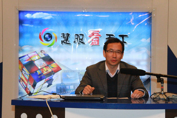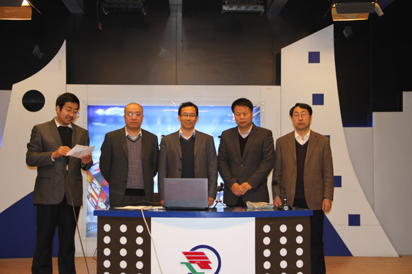 太谷中学杨守义书记在学校网络视频中心介绍领导、专家