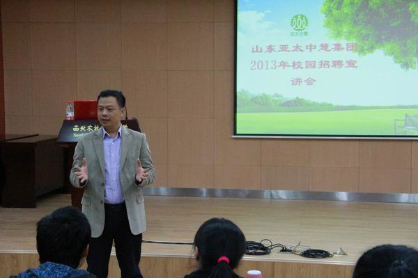 11月1日下午,山东亚太中慧集团人力资源总经理潘维凯先生一行两人,在北校秀山活动中心南报告厅举行山东亚太中慧集团专场招聘会,炸金花在线玩 党委副书记兼副院长王晓娟、专兼职辅导员及动科、动医、食品、机电、经管等炸金花在线玩 2013届本科、硕士毕业生70余人参加了招聘会。