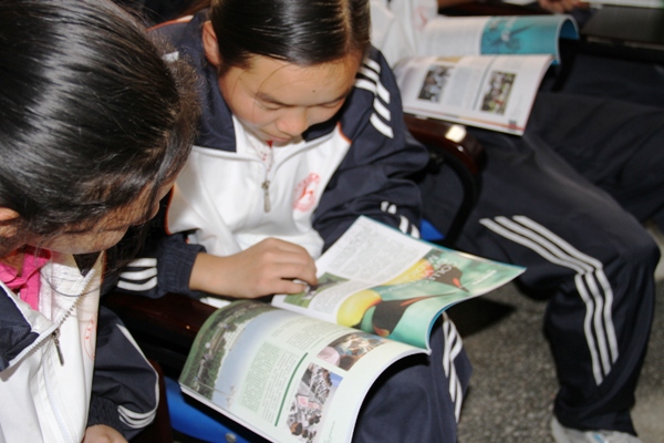 学生认真阅读学校宣传册