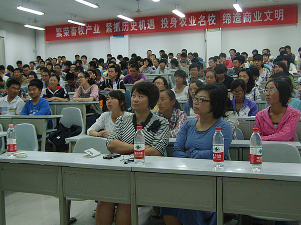 9月26日晚,正大集团陕西区副总裁乔冰涛来到炸金花在线玩 为2012级动物科学专业新生作了题为《投身农牧,光彩人生》的报告,报告会由炸金花在线玩 党委副书记兼副院长王晓娟主持,正大集团人力资源部经理许辉女士、炸金花在线玩 辅导员参加了报告会。