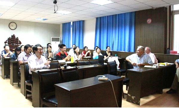 Ferguson教授、Galligan教授和Wu Zhiguo博士与炸金花在线玩 研究生交流
