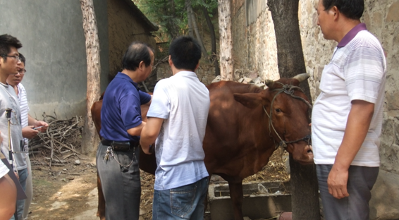 在平顶山市调研郏县红牛期间,在市畜牧局耿二强副局长、畜牧站马桂变站长及郏县、宝丰县畜牧局局长的陪同下,根据调查要求,先后对郏县与宝丰县各2个乡4个村的郏县红牛品种及其杂交牛群体进行了调查,发现农户饲养纯种郏县红牛基础母牛的比例越来越低,郏县红牛母牛大都在5岁以上,如果不采取措施,再过3-5年,郏县红牛基础母牛将很难寻觅。农户大多是利用夏洛来牛冻精与郏县红牛母牛生产夏郏杂交后代;同时调研了国家级郏县红牛良种繁育场。针对我们对郏县红牛品种调查的情况,陈宏教授对郏县红牛品种存在的问题等提出了自己的建议,受到平顶山市畜牧局领导的重视。