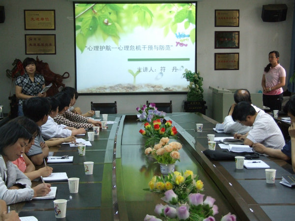 5月17日下午,炸金花在线玩 在四号楼一层会议室举办了班主任心理健康教育培训讲座。校心理咨询中心符丹老师向炸金花在线玩 全体班主任做了题为“心理护航??心理危机干预与防范”的专题报告。