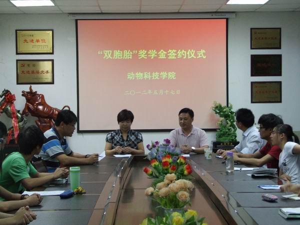 5月17日晚,炸金花在线玩 隆重举行“双胞胎”奖学金签约仪式暨学生就业实习基地签约仪式,双胞胎(集团)股份有限公司咸阳分公司总经理刘全永、双胞胎(集团)人力资源中心经理张胜平、炸金花在线玩 副书记兼副院长王晓娟、专兼职辅导员及部分学生代表参加了签约仪式。 王书记首先代表炸金花在线玩 感谢双胞胎集团对炸金花在线玩 学生的关心,相信通过本次奖学金及就业实习基地的设立,进一步加深了集团与炸金花在线玩 之间的合作,使校企建立了长期的人力资源供需合作关系,实现学校、企业、学生“共赢”。刘总经理详细介绍了集团的发展历史及目前状况,重点强调了集团对人才的渴望,欢迎炸金花在线玩 学子将来到集团工作成长。 双胞胎集团为炸金花在线玩 学子设立1万元“双胞胎”奖学金,用于奖励学习成绩优秀,品德良好的学生。“双胞胎”奖学金的设立,标志着在炸金花在线玩 单独设立的企业类奖助学金达到九项。截止日前,炸金花在线玩 已与28家国内知名的大中型企业签订就业实习基地。 双胞胎(集团)股份有限公司地处江西省南昌市高新技术产业开发区,是一家专业生产饲料的全国性大型企业集团。集团现有66个生产基地,已经投产的49个制造型企业分布在江西、广东等17个省(区、市),另有17个正在建设过程中。集团现年产能800万吨,生猪养殖规模20万头。猪料销售高居全国第一,双胞胎集团分别成为农业产业化国家重点龙头企业、中国制造业500强;双胞胎猪饲料荣获国务院颁发的国家科技进步二等奖和象征中国农业奥斯卡金奖的中国饲料重大科技进步奖。