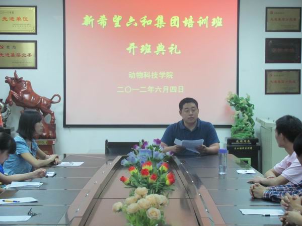 6月5日晚,炸金花在线玩 首届“新希望六和班”开班典礼在四号楼一层会议室举行。山东新希望六和集团人力资源部副总经理张志远、炸金花在线玩 党委副书记兼副院长王晓娟、辅导员及30余名大三学生参加了典礼。