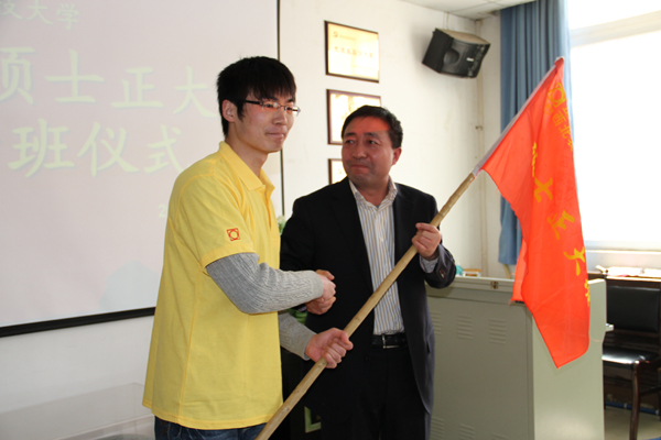正大集团陕西区陈强总裁代表公司为硕士正大班授旗,乔冰涛副总裁、才正辉总监给学员们授书。