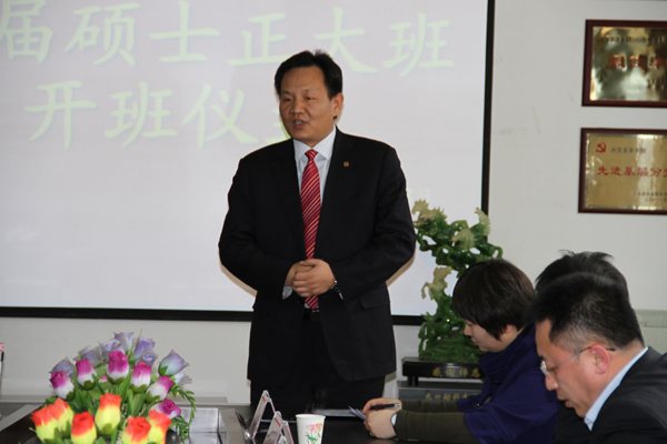 正大集团陕西区副总裁乔冰涛在致辞中对公司的基本情况及办班的目的意义作了简要介绍,他希望,通过硕士正大班的举办,促进学校与企业、学生与企业的更多交流,为企业输送更多的优秀人才。