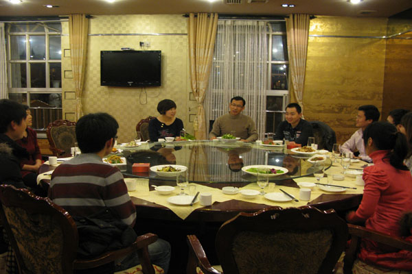 1月21日晚,炸金花在线玩 领导闫祖书书记、王晓娟副书记,研究生管理办公室及教学办公室老师与留校的研究生、本科生在玉皇宫酒店共度新春佳节。