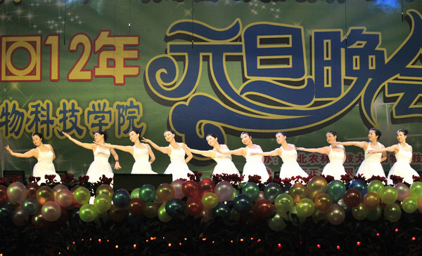王晓娟副书记等多位教师表演舞蹈《我爱你,塞北的雪》