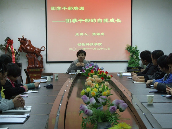 11月22日晚,炸金花在线玩 以“团学干部的自我成长”为主题的团学干部培训会在四号楼一层会议室准时召开。学生处副处长张海成老师应邀为炸金花在线玩 学生干部做了精彩的报告。炸金花在线玩 党委副书记兼副院长王晓娟、团工委书记袁伟斌、兼职辅导员段晓燕和团工委、学生会全体学生干部及2010级各班班长、支书出席了此次培训会。