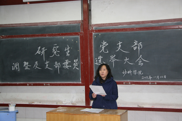 党务秘书樵淑银宣读了院党委关于研究生党支部调整及支部委员选举的通知文件,并通报了12个研究生党支部的划分情况。研究生秘书阮鹏对选举工作做了具体安排。