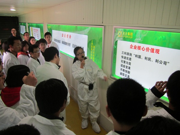 在实地参观阶段,同学们在张总的带领和介绍下,参观了陕西正大有限公司现代化蛋种鸡场、饲料厂等生产区域。
