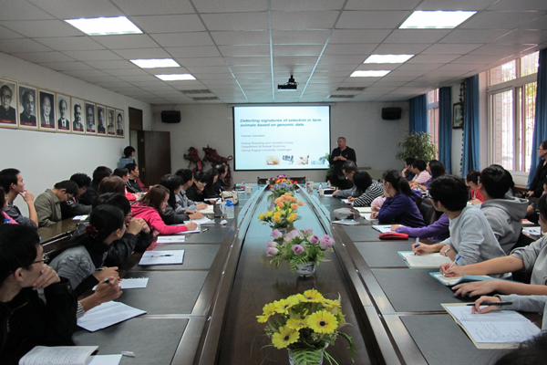 Henner Simianer教授分别从家畜全基因组数据分析与全基因组选择两个方面作了一场精彩的学术报告,受到师生的热烈欢迎。