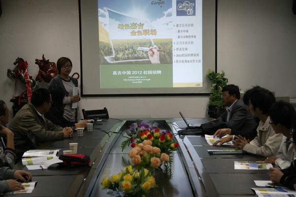 10月19日上午,炸金花在线玩 迎来嘉吉公司领导卓文强先生一行8人,在四号楼一层会议室举办专场招聘会。炸金花在线玩 党委副书记兼副院长王晓娟老师、专职辅导员刘铂、全体兼职辅导员及部分毕业生参加了此次招聘会。