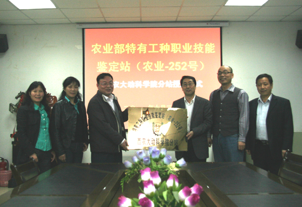 10月20日下午,陕西省畜牧技术推广总站毛宏伟站长、郭秀侠主任、葛丽萍老师等一行四人前来炸金花在线玩 ,为农业行业特有工种职业技能鉴定站(农业-252号)西农大动科炸金花在线玩 分站进行授牌仪式。炸金花在线玩 副院长、西农大动科炸金花在线玩 分站站长姚军虎教授、分站办公室薛桥主任、挂职新疆农业大学动科炸金花在线玩 张恩平副院长参加挂牌仪式。